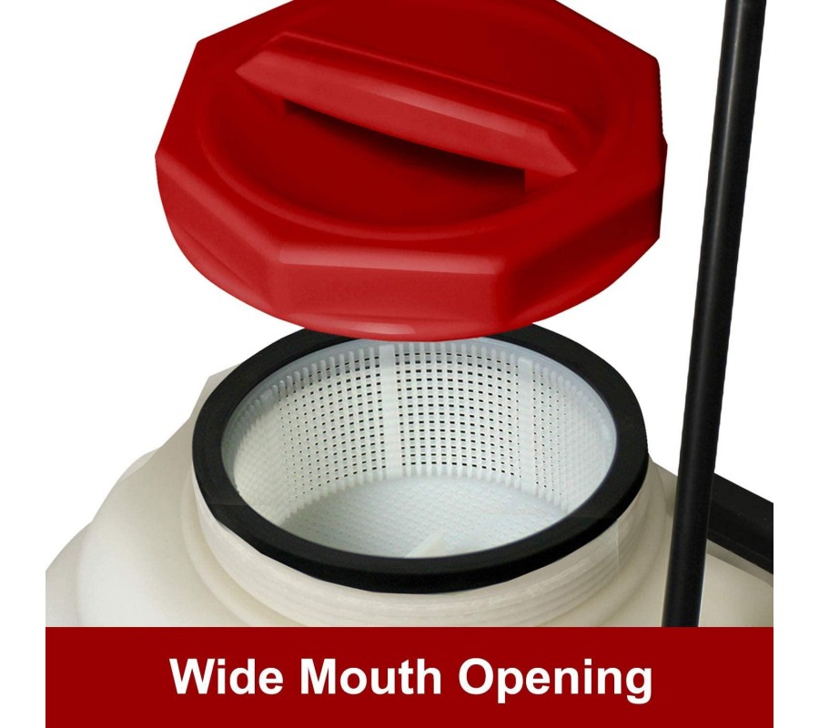 - 4-gallon tank with 6-inch wide mouth funnel for easy filling and cleaning