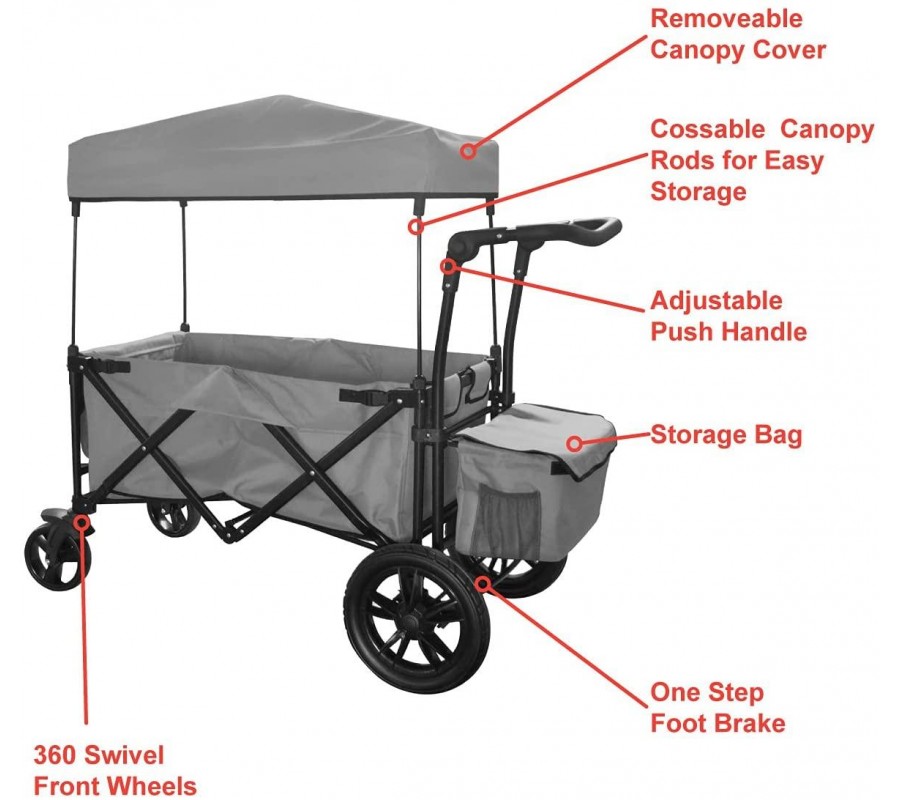 • Multi-use collapsible wagon with easy pull up folding. Easily unfold or pack the wagon for use and transportation.