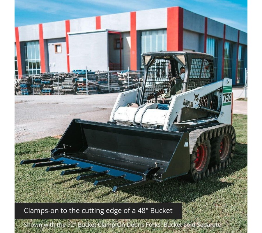 • DESIGNED FOR BUCKETS: The Clamp-On Debris Fork is designed to clamp directly onto your bucket’s cutting edge. With the puck, it will slide onto buckets that are up to 1.5-inch-thick and 2-inches without the puck.
