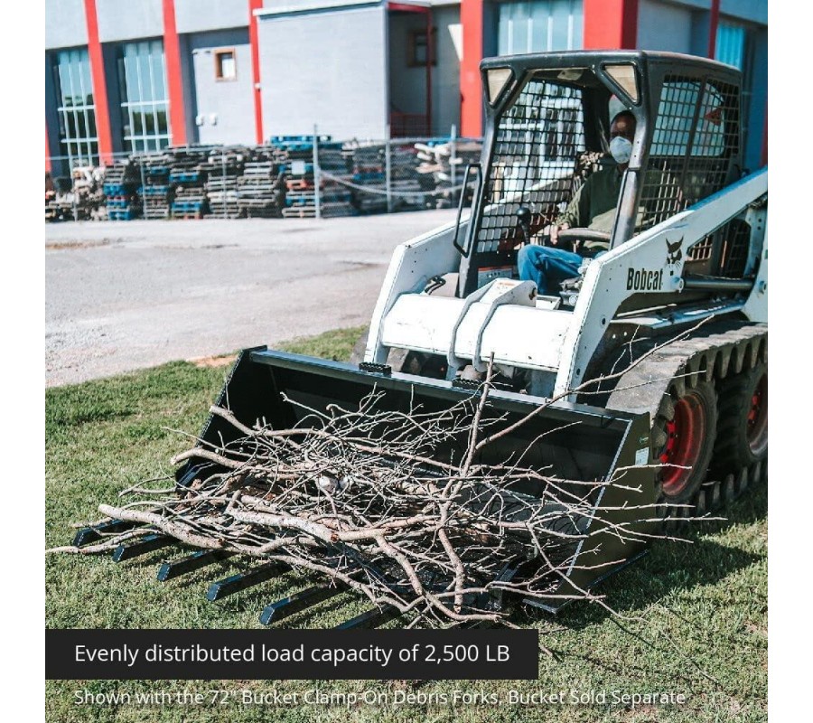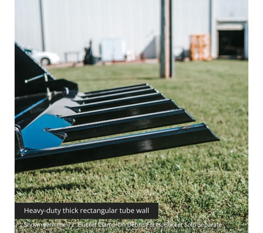 • DURABLE CONSTRUCTION: The Clamp-On Debris Fork Attachment features an additional reinforced frame. The grade 50 structural steel allows the 5 FT Debris Fork Attachment to have an evenly distributed load capacity of 4,560-pounds.