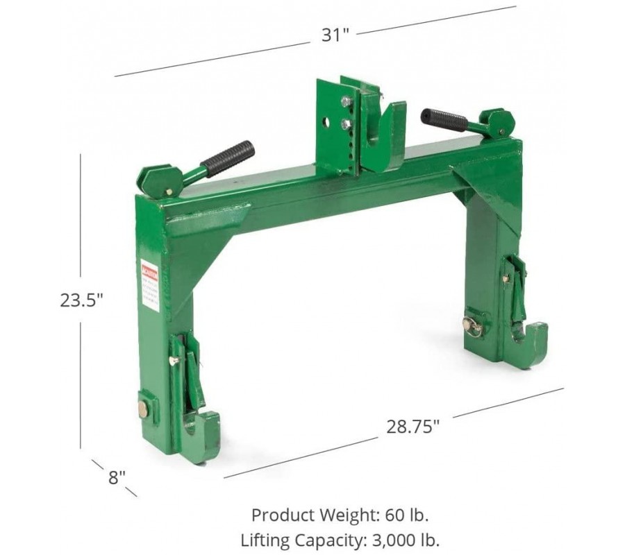 • NO WELDING OR MODIFICATION NEEDED: This adapter comes ready to attach directly to your Tractors 3Pt hitch without any modifications, bolting or welding required. Back your tractor right up to the back of the adapter, hook into the top link bar and connect your lower lift pins. It is that easy!
