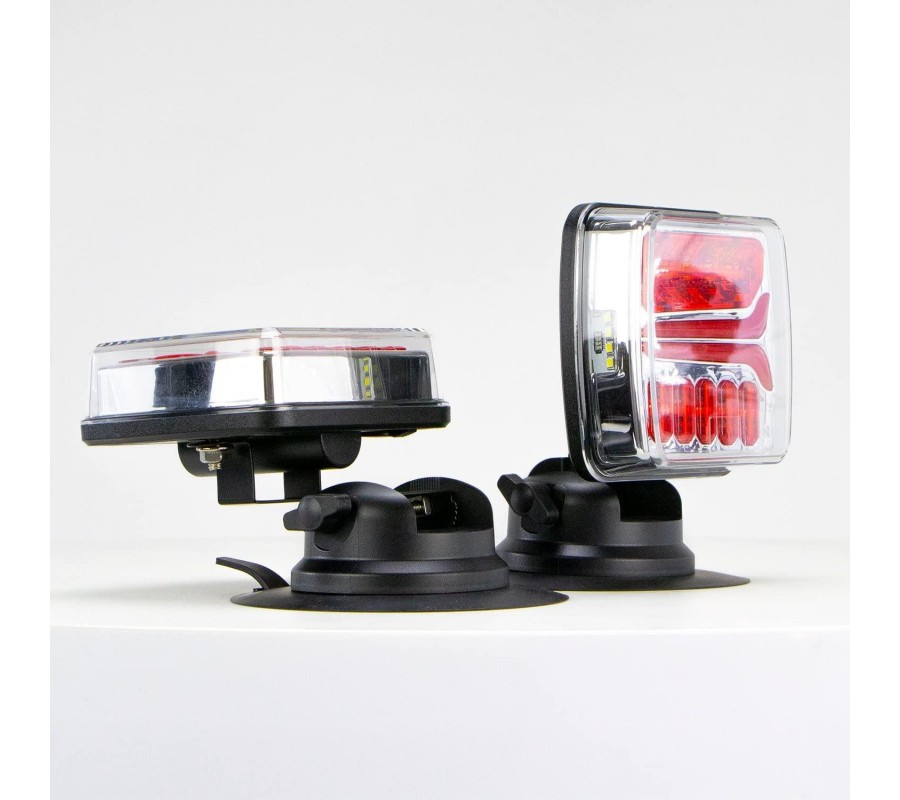 • STRONG 90 POUND PULL MAGNETS WITH SUCTION CUPS – The strong, rubber coated magnets stick to any solid metal surface. The magnets include a suction cup that increases the bond between the light and the towed vehicle or trailer. The unique double action suction-magnet system holds better and longer than magnets or suction cups alone. The coating is specially designed to decrease the chance of surface or paint damage.